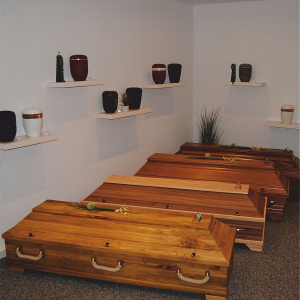 Wenn Sie zum Beratungsgespräch zu uns kommen, sprechen wir ausführlich darüber, wie Sie sich die letzte Ehre für den Verstorbenen vorstellen. In unserer Ausstellung können Sie anschließend auch einen Sarg oder eine Urne aussuchen und sich für die passende Sterbewäsche entscheiden. Es ist uns ein Anliegen, dass Sie sich vor der Bestattung gebührend von dem Verstorbenen verabschieden können. Da eine Abschiednahme zu Hause häufig nicht möglich oder gewünscht ist, stellen wir Ihnen hierfür gerne unseren Abschiedsraum zur Verfügung.